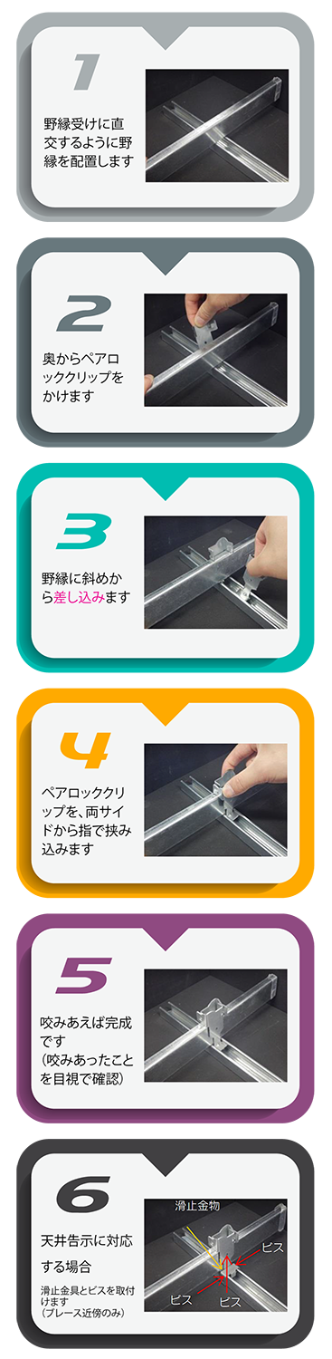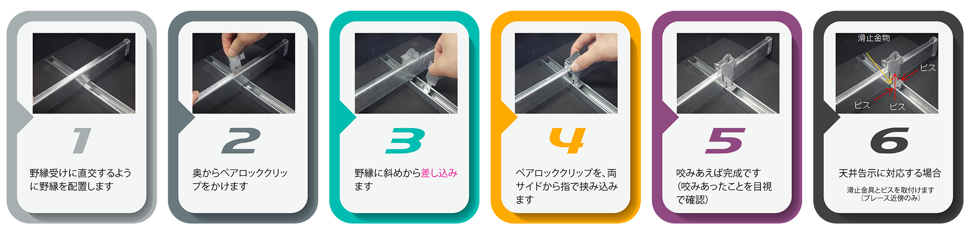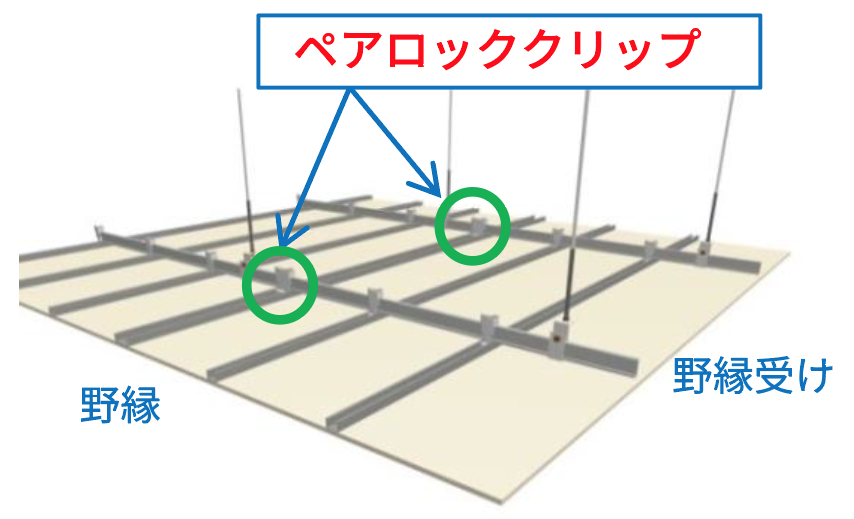 野縁と野縁受けの接合に“ペアロッククリップ”